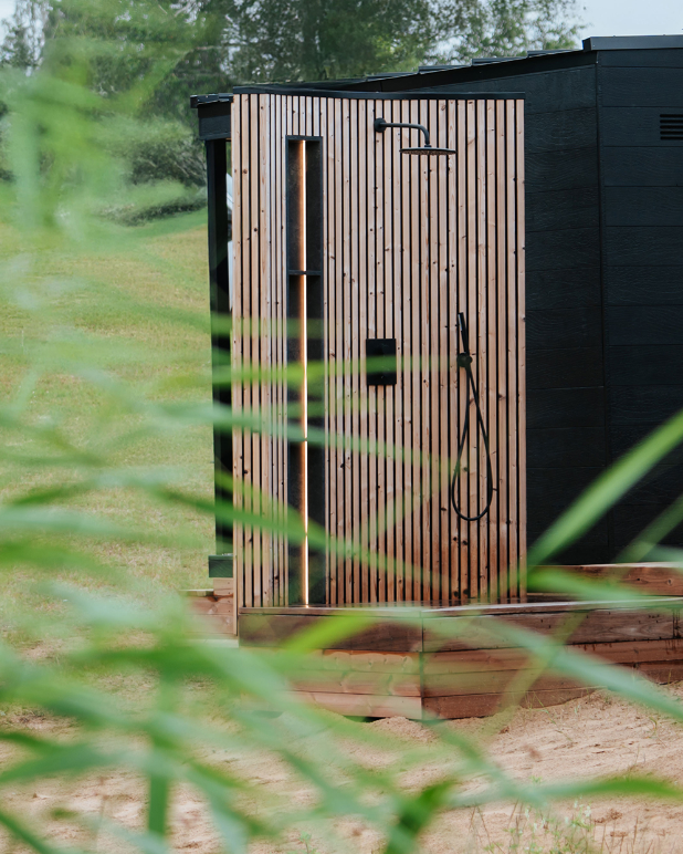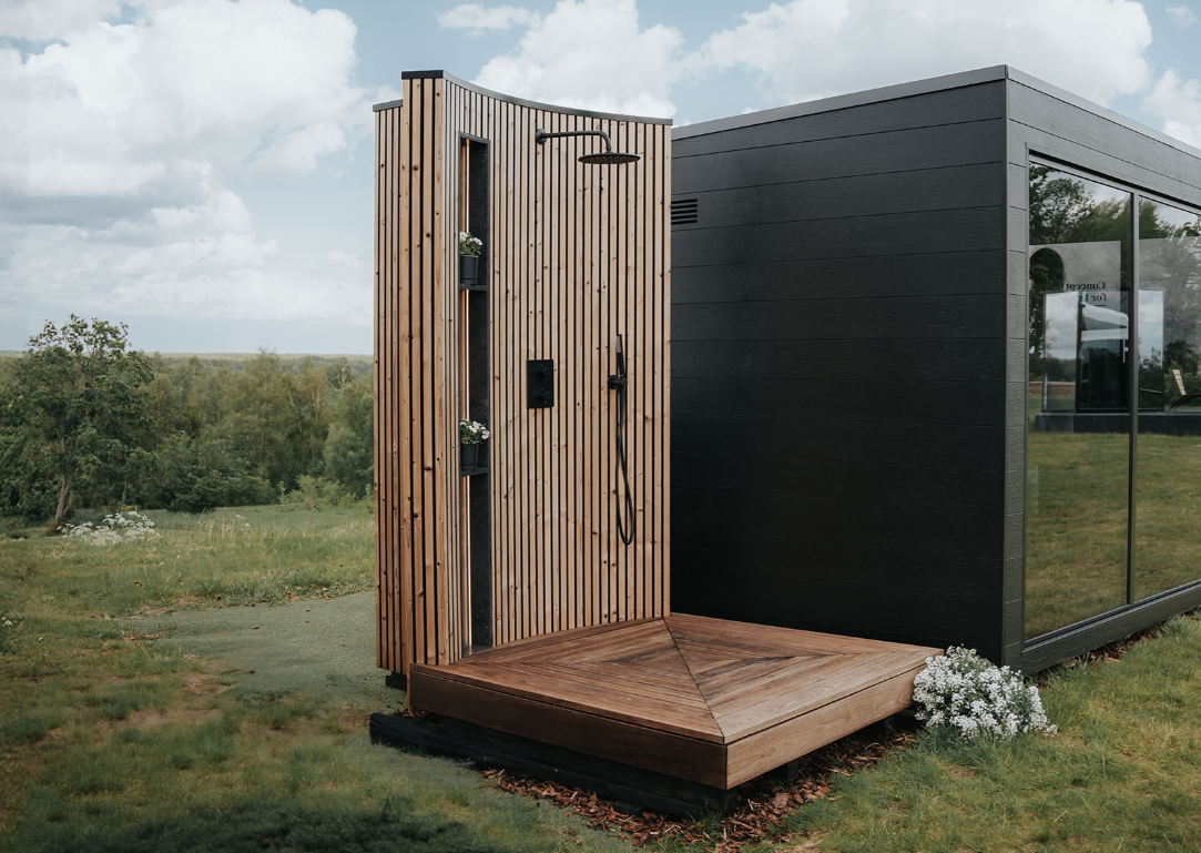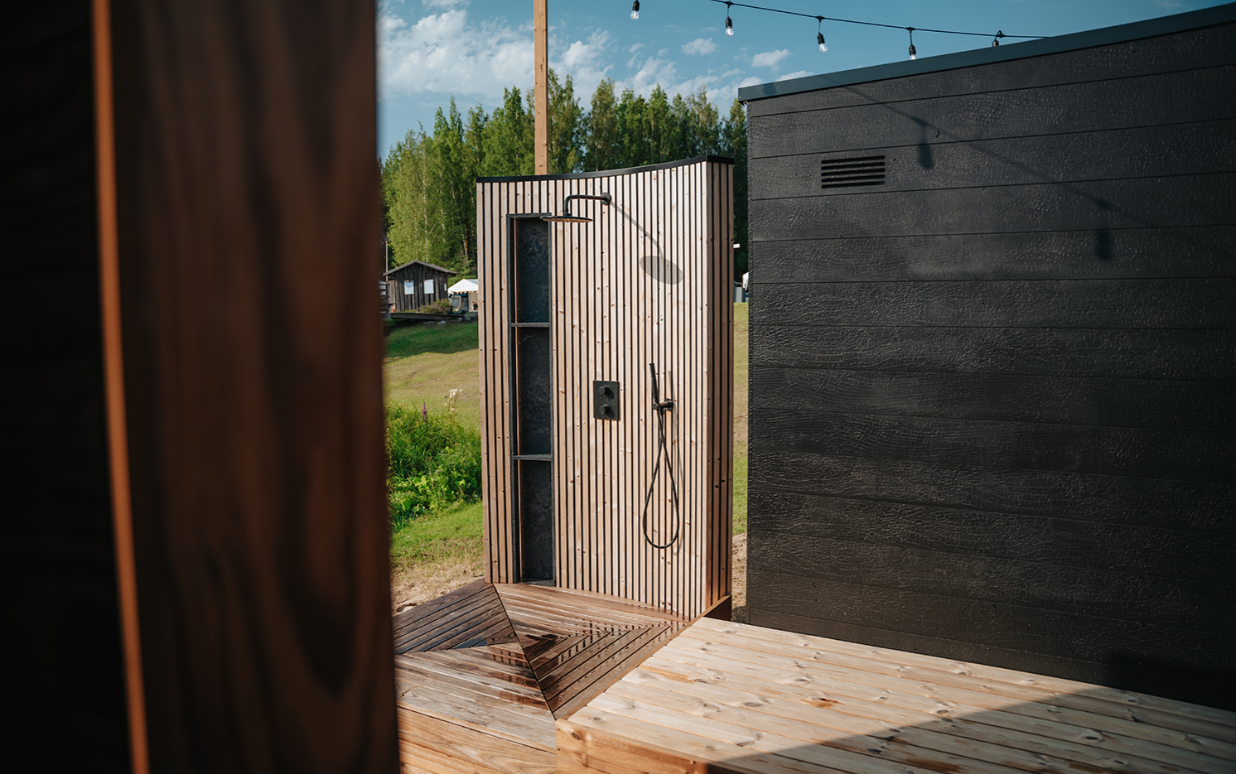 Rafraîchissement extérieur haut de gamme : idéale pour se rincer après une séance de sauna ou simplement se rafraîchir par temps chaud.